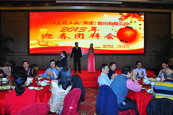 緊接著,在熱烈的掌聲祝福中,甘化公司董事長(zhǎng)兼總裁麥慶華先生以及各公司高管進(jìn)行頒獎(jiǎng),對(duì)股份公司及德力光電的優(yōu)秀員工、生物中心的先進(jìn)管理者和先進(jìn)工作者進(jìn)行表彰。然后,公司領(lǐng)導(dǎo)集體上臺(tái)敬酒。隨著禮炮響亮地鳴放,萬眾期待的團(tuán)拜晚宴正式開始了!